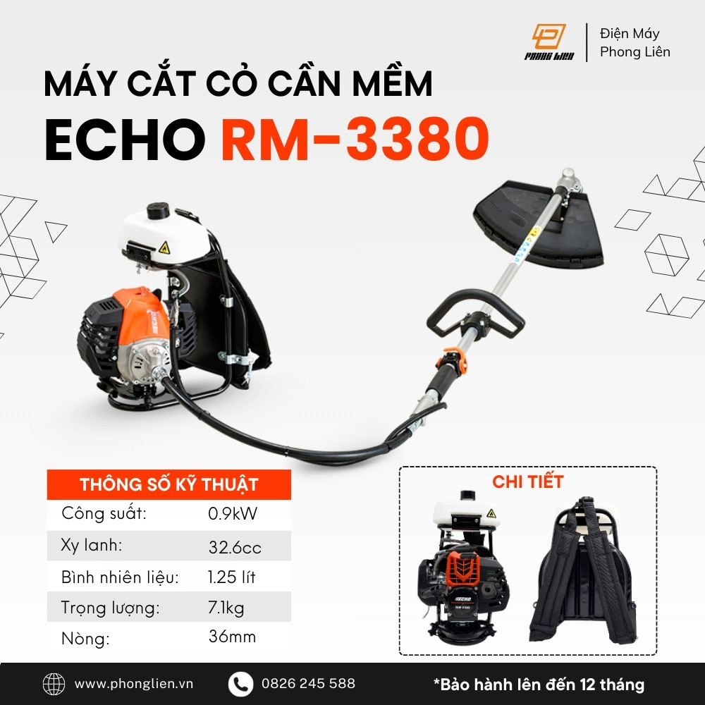 Máy cắt cỏ Echo RM-3380 chính hãng hiện đang có mặt tại hệ thống showroom của Điện Máy Phong Liên. Chúng tôi hiện là một trong những đơn vị phân phối các dòng sản phẩm của thương hiệu ECHO hàng đầu miền Bắc với mức giá tốt nhất. Đặc biệt, tại Điện Máy Phong Liên còn thường xuyên cung cấp những chương trình khuyến mại hấp dẫn dành cho người tiêu dùng.
