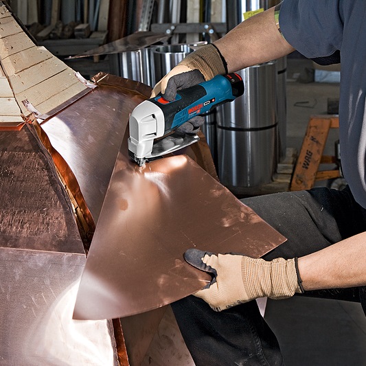 Máy cắt đa năng dùng pin GSC 12V-13 Máy cắt cầm tay dạng đột dùng Pin Bosch GSC 12V-LI thừa hưởng đầy đủ các ưu điểm các thiết bị Bosch có khả năng dễ dàng thay đổi các dụng cụ cắt cho những đường cắt thẳng hoặc theo hình dạng yêu cầu nhờ chức năng khóa tấm khuôn dập. Là dòng máy chuyên nghiệp, Bosch GSC 12V-LI có khả năng cắt kim loại nhanh gấp 4 lần cho các ứng dụng để đánh dấu kẻ đường và tạo mẫu dễ dàng. Bên cạnh đó máy cũng được dùng để cắt miệng khuyết bên trong. Với nhiều tính năng ưu việt và nổi trội GSC 12V đang là sản phẩm được khách hàng ưa chuộng nhất trên thị trường.