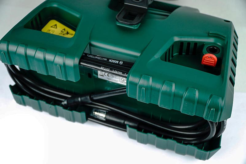 Máy xịt rửa xe áp lực cao Bosch AQT 100 có thiết kế nhỏ gọn, chắc chắn
