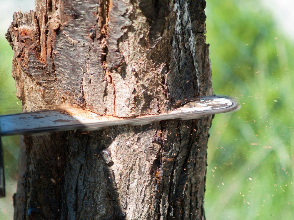 → Khi cắt gỗ, đường cắt bị lệch: do một bên lam bị mòn nhiều, xích sẽ bị kéo nghiêng theo hướng đó. Kết quả là dù bạn có cưa thẳng tay, đường cắt vẫn cong hoặc bị xiên sang một phía. Ví dụ: bạn định cắt thẳng một khúc gỗ nhưng sau khi cưa xong, đường cắt lại chếch sang trái hoặc phải, không vuông góc như mong muốn.