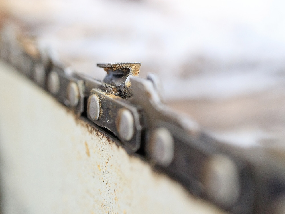 Khi lam máy cưa xích bị mòn không đều, bạn có thể nhìn thấy sự khác biệt giữa hai bên cạnh lam: