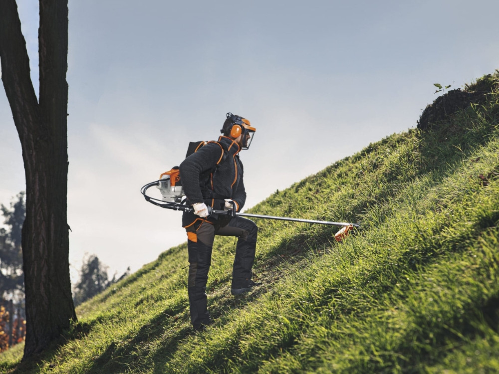 Với đất đồi dốc hoặc nền gồ ghề nhưng ít đá, máy cắt cỏ phần mềm tỏ ra rất hiệu quả vì thiết kế đeo lưng + cần mềm cho phép người dùng di chuyển dễ dàng trên địa hình không bằng phẳng. Khi leo dốc hoặc đi ngang sườn đồi, trọng tâm máy nằm sau lưng giúp bạn giữ thăng bằng tốt hơn, không bị kéo nặng về phía trước như khi dùng máy cần cứng.